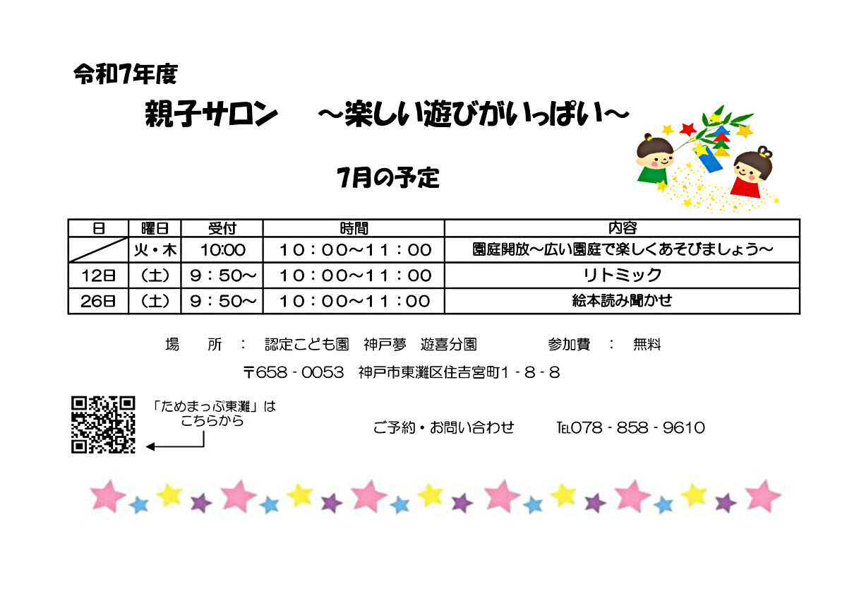 7月は、12日(土)と26日(土)の2日間の開催です。
