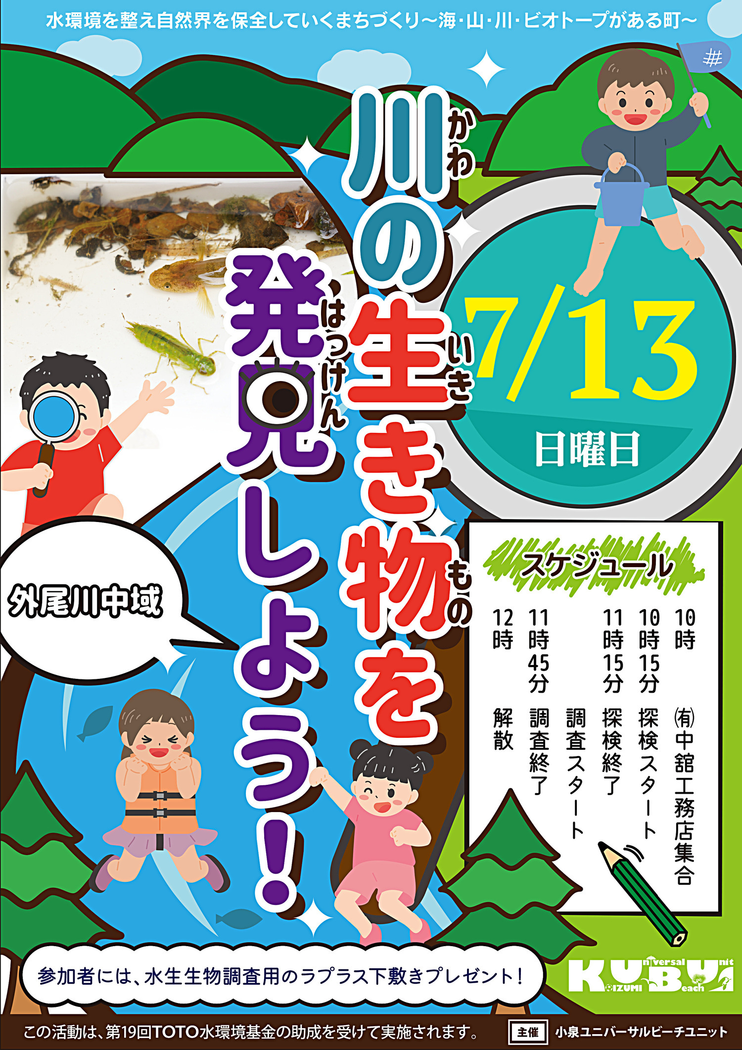 流れが緩やかで浅い安全な川で、生き物を発見し調査してみよう!