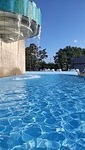 きらめく水面、輝く光と緑でいっぱいです。ぜひふれあいプールへお越しください。
