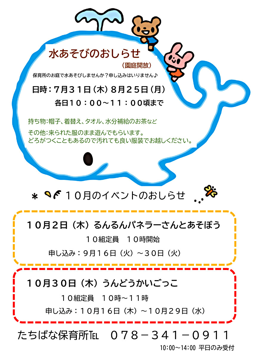 保育所のお庭で噴水シャワーやお水遊びを、ちゃぷちゃぷ一緒に楽しみましょう(^▽^)/
