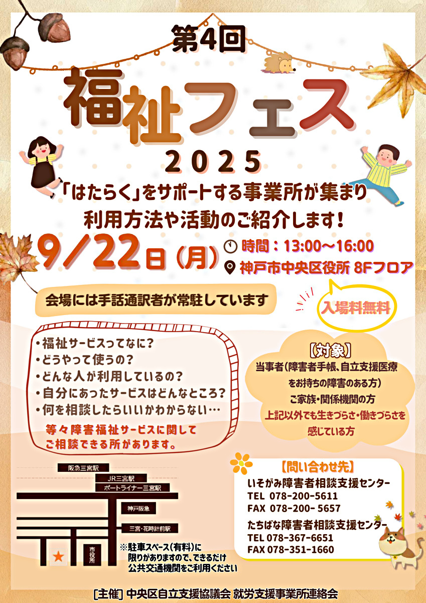 問合せ先:いそがみ障害者相談支援センター078-200-5611 たちばな障害者相談支援センター078-367-6651