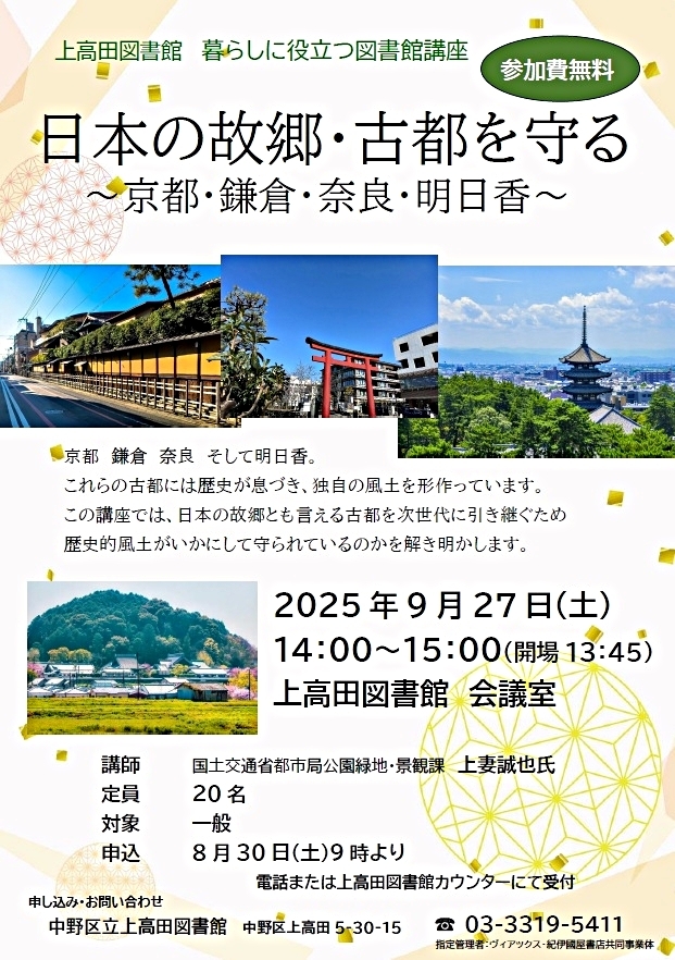 この講座では、日本の故郷とも言える古都を次世代に引き継ぐため