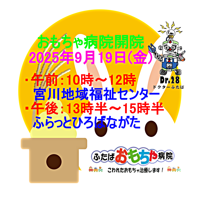 ※不要なおもちゃ(壊れていても可)をお持ちください。ドナーとして活用します。