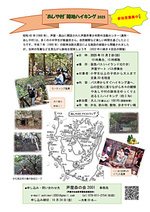 ●内 容:バス停からすぐハイキング道へ、山の空気に浸りながら木々の観察やあしや村の跡地をゆっくりと巡るミニハイキング(約3 Km)