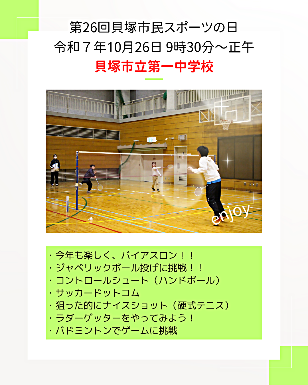 貝塚市民スポーツの日では、気軽に楽しく色々なスポーツを体験することができます。