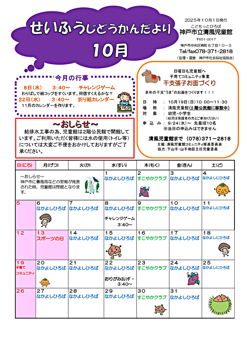 清風児童館 10月館だより - みんなのまちの掲示板 ためまっぷ