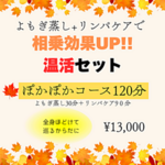🔸 ぽかぽかコース120分(よもぎ蒸し30分+リンパ90分)¥13,000