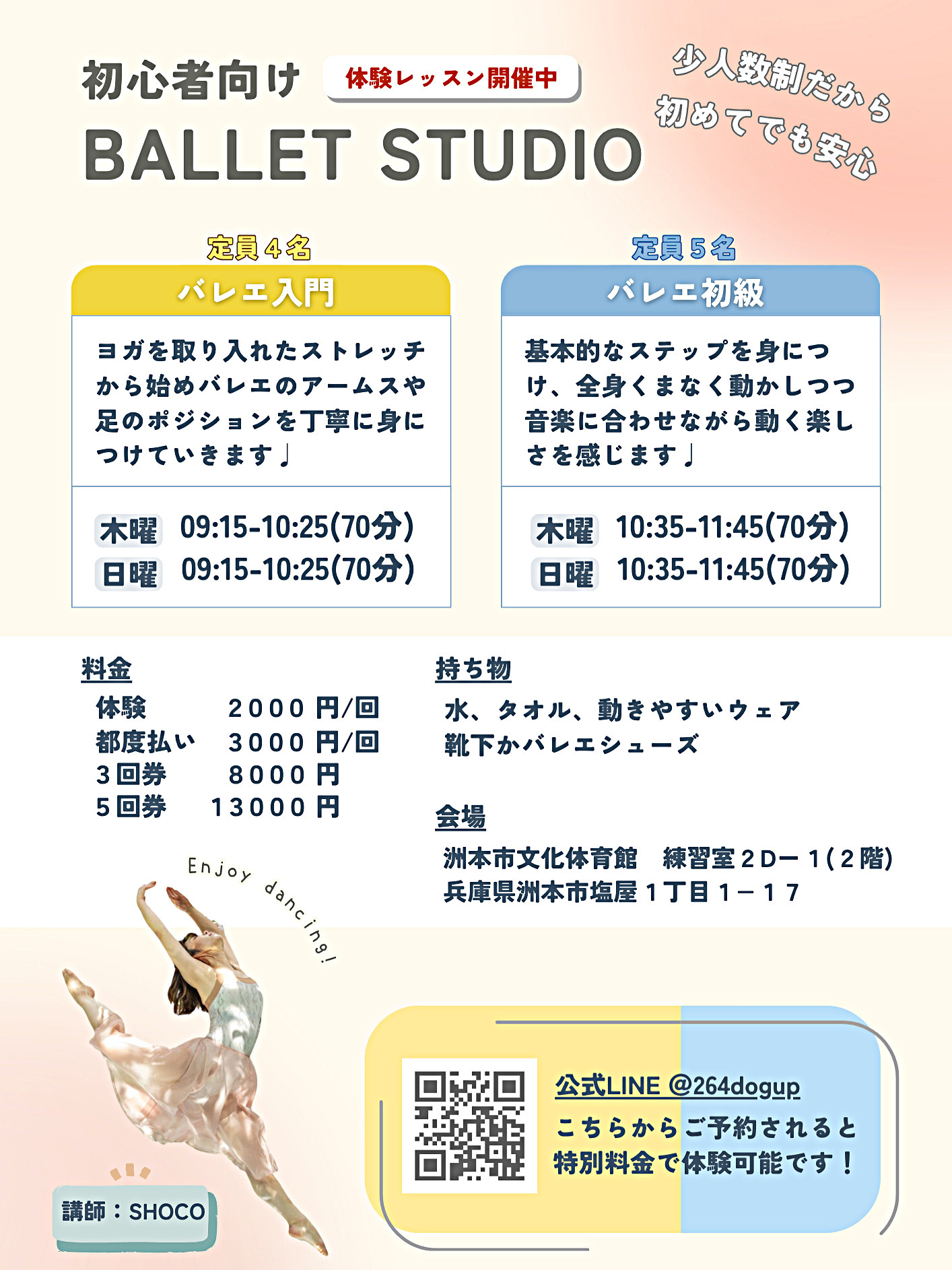 都内で5年ほど、バレエや空中エクササイズのインストラクターをしておりましたが、この度、洲本市に移住しまして、こちらでもレッスンを開催することとなりました☺️