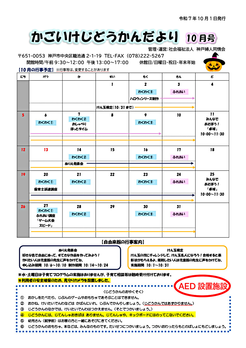 ※水・土曜日もプログラムの設定はありませんが、子育て相談等を随時受け付けております。ご利用ください。