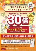 令和7年11月10日より、キャンペーン期間中につげさんポイント加盟店で、つげさんポイントアプリ(yuifill)またはカードを提示してお買い物をすると、通常の30倍のつげさんポイントが付与されます。