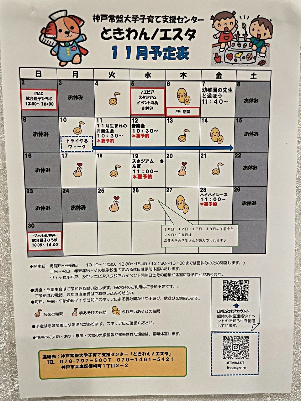 こんにちは。 ときわんノエスタ11月の予定表です。