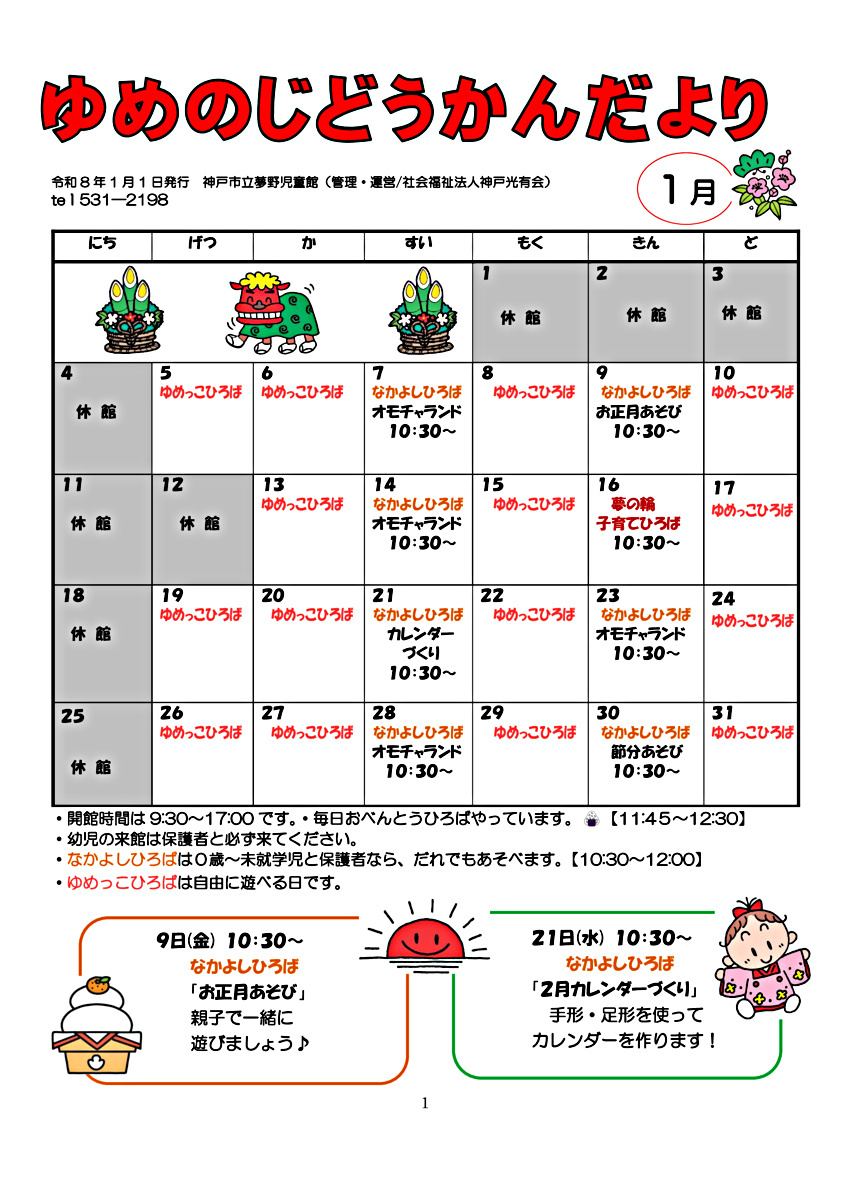 1月の児童館だよりです。今年も一緒に楽しく遊びましょう♪
