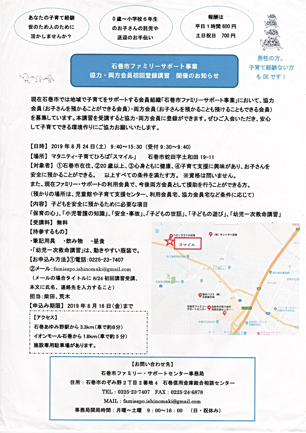 協力会員(お子さんを預かることができる会員)・両方会員(子どもを預かることも預けることもできる会員)を募集しています。ぜひ、講習にご参加いただき、ご入会して、安心し子育てできる環境づくりにご協力をお願い致します。