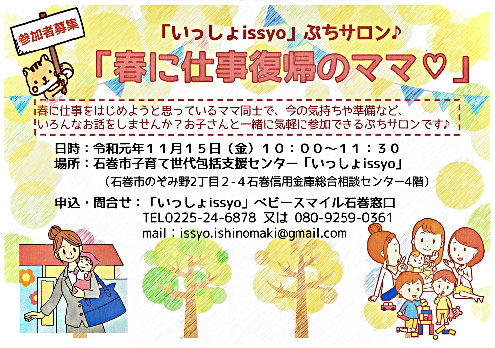 春に仕事をはじめようと思っているママ同士で、今の気持ちや、準備など、楽しくおしゃべりしませんか?