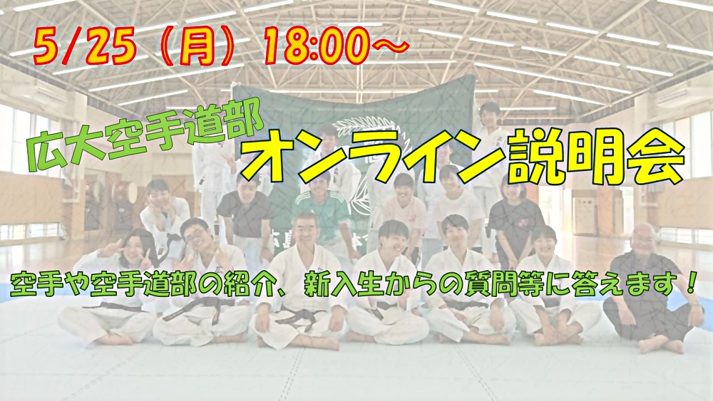 5/25(月)18:00からMicrosoft Teamsにて広島大学空手道部のオンライン説明会を行います!