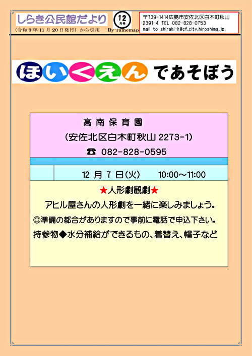 詳細については、「みそのうこばとの森 子育て支援センター」でお問い合わせ下さい。