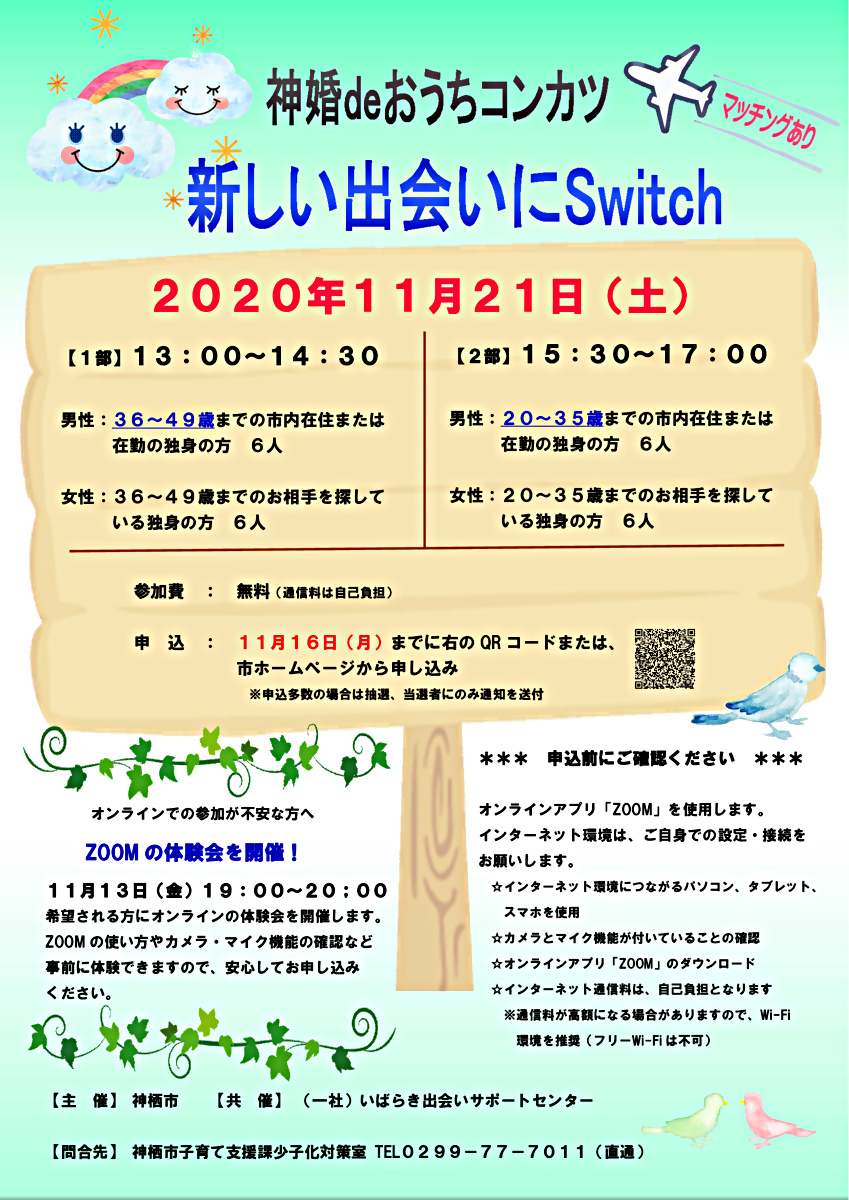 1対1トーク、グループトーク、マッチングあり、Zoomの練習会付きイベントです。