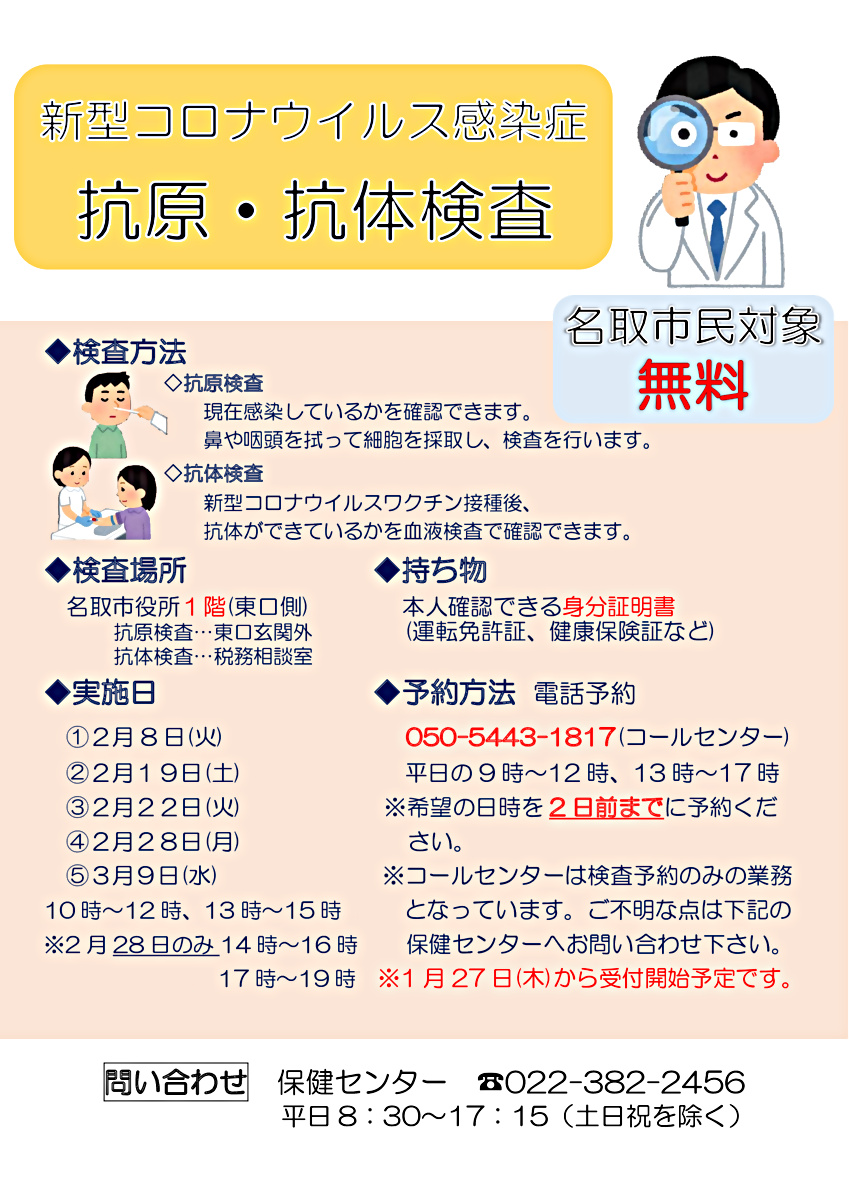 市民の方を対象した抗原・抗体検査の無料実施(新型コロナウイルス感染症対策) | イベント情報