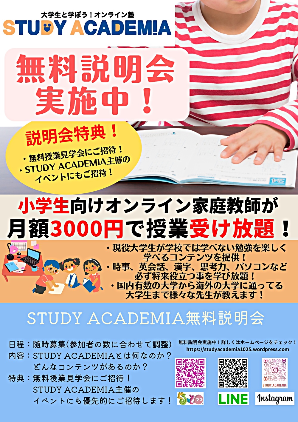 小学生向けオンライン家庭教師のSTUDY ACADEMIAです!
