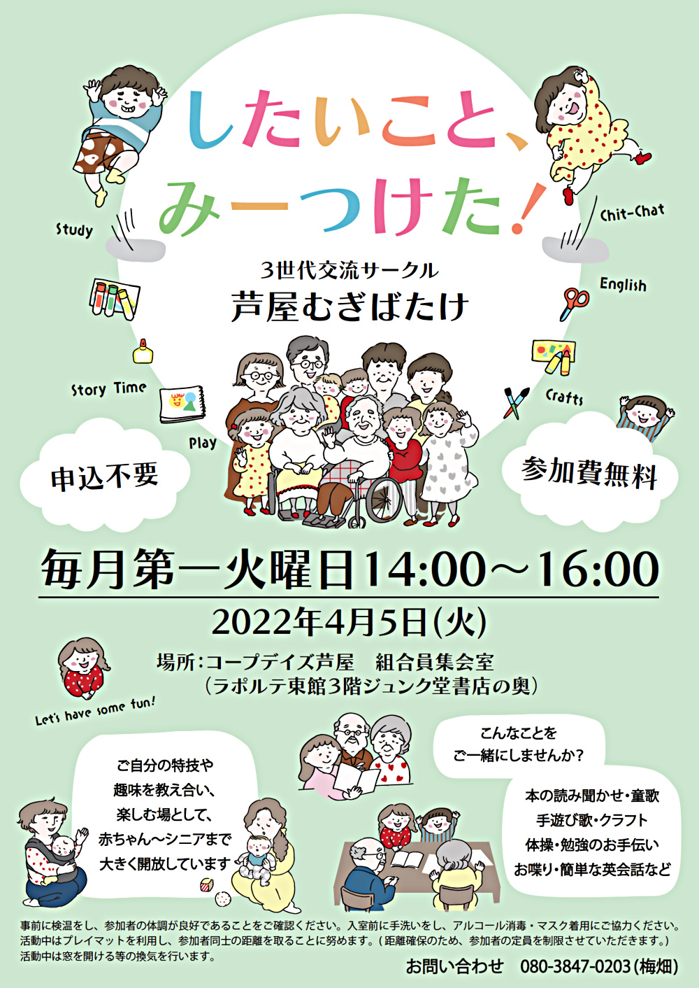 〜芦屋むぎばたけ 4/5(火)のお知らせ〜