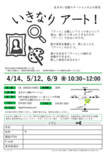 本文「氏名、住所、電話番号、参加希望日(4/14、5/12、6/9)」を記載の上、送信ください。