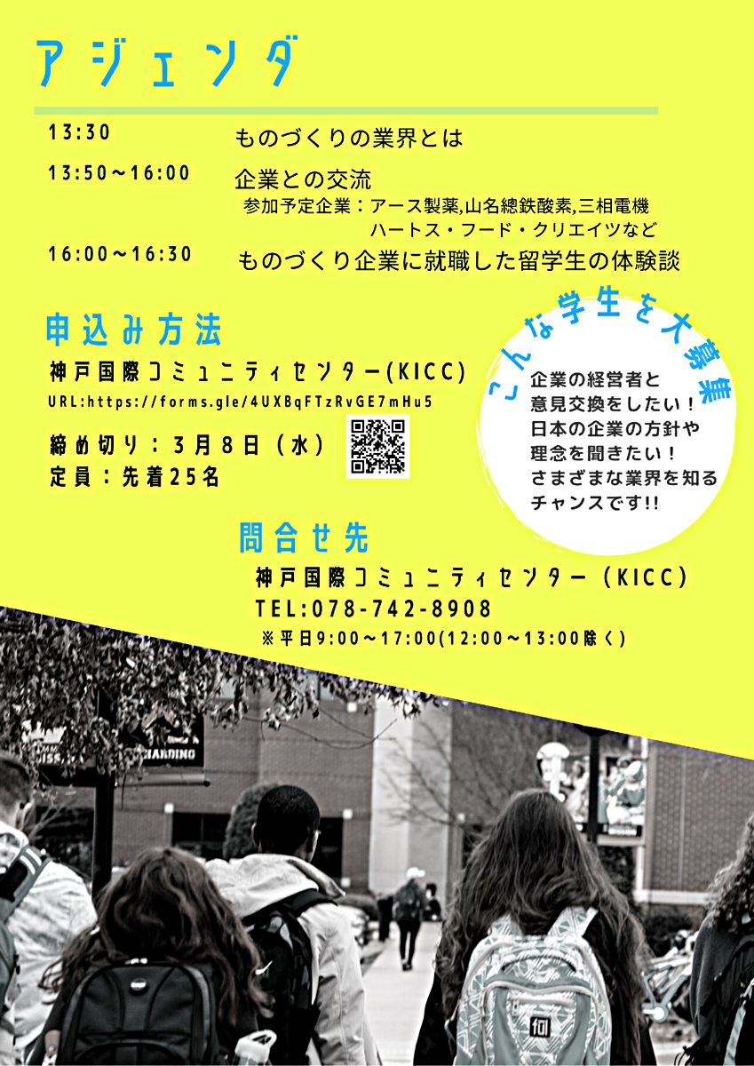 神戸のものづくり企業に仕事の内容や働き方、業界のこと・・・なんでも聞くことができます。